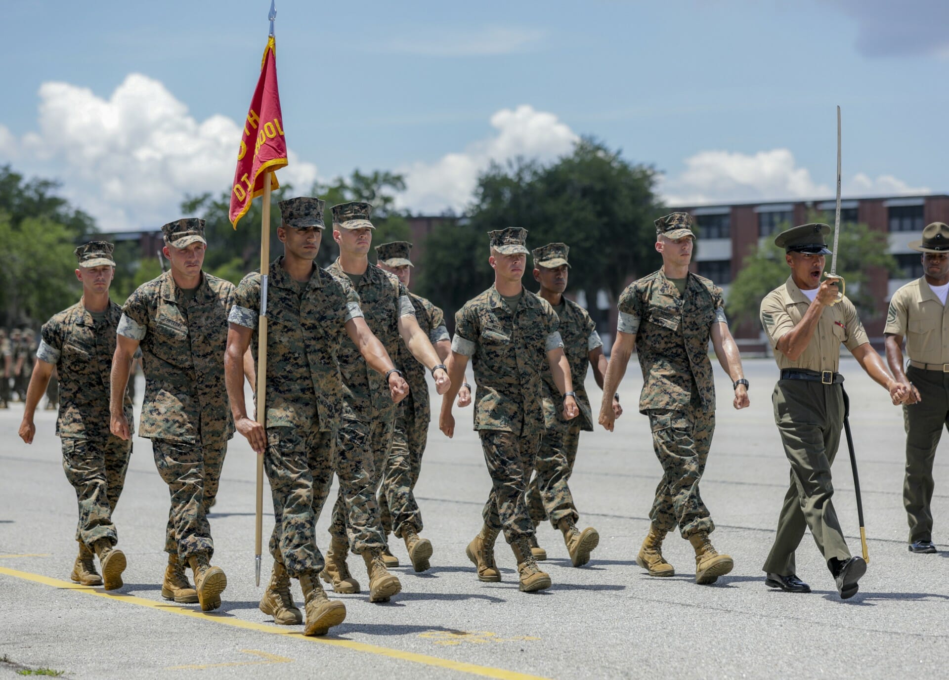 First Sgt. Juan Segura, the senior enlisted advisor for Drill Instructor School and one of Alshimmari’s instructors, recollects meeting Alshimmari in the first days of class and being struck by his story of resiliency. Segura remembers a similar experience from the opposite side of the coin, as a Marine deployed in Iraq. Segura and his squad would stuff their pockets with candy and small trinkets from their care packages to give to the children as they patrolled the area.