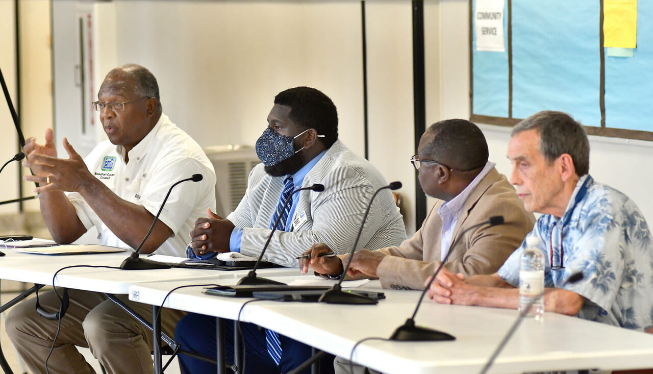 Beaufort County Council Members York Glover (District 3) and Paul Sommerville (District 2) hosted a joint district meeting with Beaufort County Board of Education Member William Smith and State Representative Michael Rivers on Thursday, June 24, at the St. Helena Elementary School Cafeteria to discuss community issues.