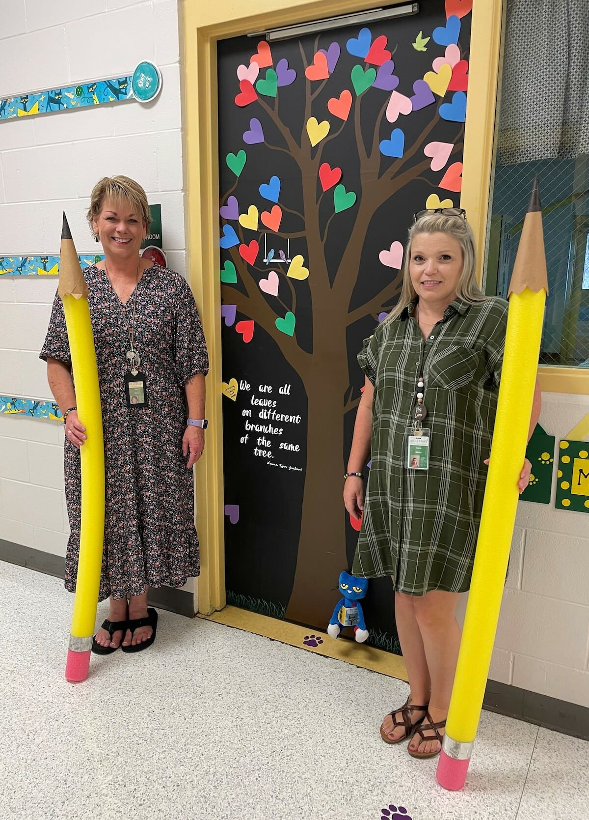 Kindergarten teacher Amy Cook, left, and assistant Carrie Marks , right, share a classroom at at Coosa Elementary. “The classroom is extra special to me,” Cook said. “My children are grown and have careers of their own, but they spent many hours with me in this classroom when they were growing up. So, I enjoy spending extra time setting it up. I love seeing the joy and excitement on the little faces when they come into our classroom. They are sometimes scared in the beginning and it warms my heart to see them smile. We spend our time in the classroom singing, dancing, learning, laughing, and enjoying each other. We have fun. Plus, I get to do this with a wonderful friend. Together, we grow big hearts and minds.”