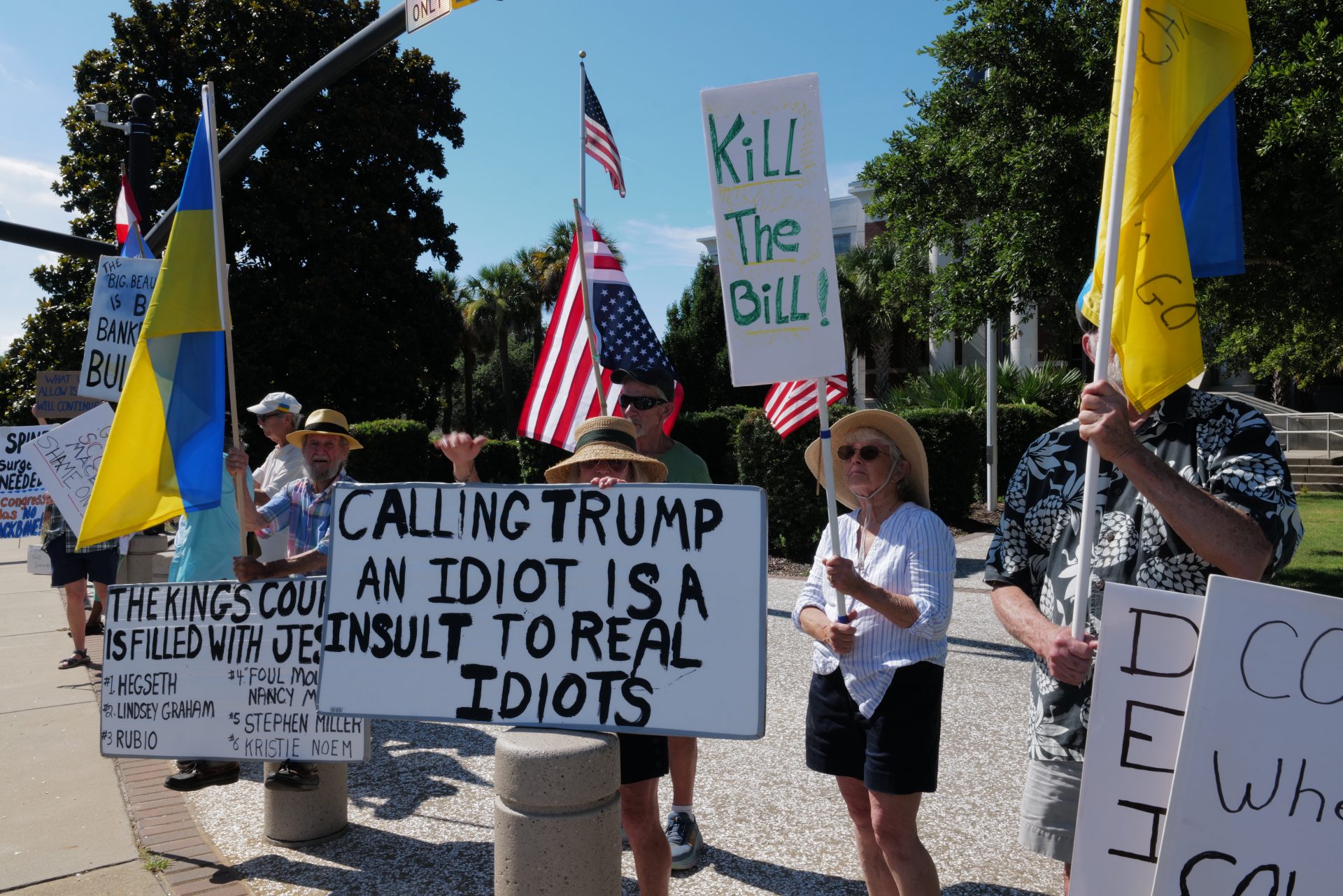 Roughly three dozen protesters lined the street in front of Beaufort City Hall on Boundary Street on Monday, June 30, 2025. The protesters are rallying against policies enacted by President Donald Trump’s administration. They rally together every Monday at 4:30 p.m. in front of the Beaufort City Hall at the intersection of Boundary Street and Ribaut Road. Asa Aarons Smith/The Island News
