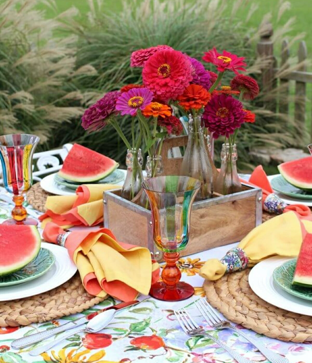 It’s the perfect season to play around with colors, so start with your tableware. Use brightly colored plates to add an eclectic feel to the table. Don’t worry if they don’t match—mismatched dinnerware makes the affair appear more laidback. Scour flea markets or yard sales for inexpensive but attractive china that you can mix and match.