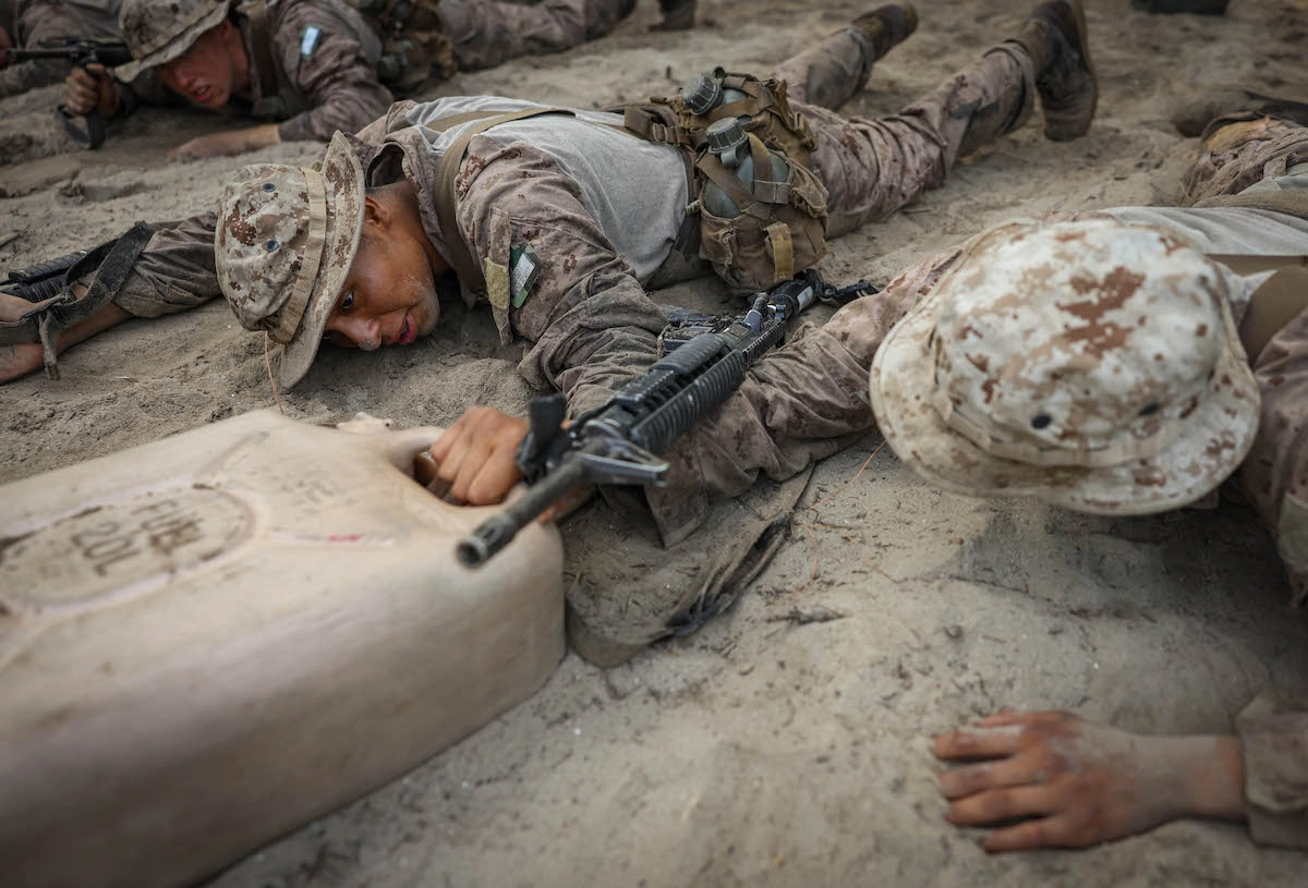 Recruits with Golf Company, 2nd Recruit Training Battalion, complete the Crucible on July 24, 2023, on Marine Corps Recruit Depot Parris Island. Following a culminating 15-kilometer hike to the parade deck, recruits are given their Eagle, Globe and Anchor and officially become United States Marines. Photos by Lance Cpl. Ava Alegria/USMC