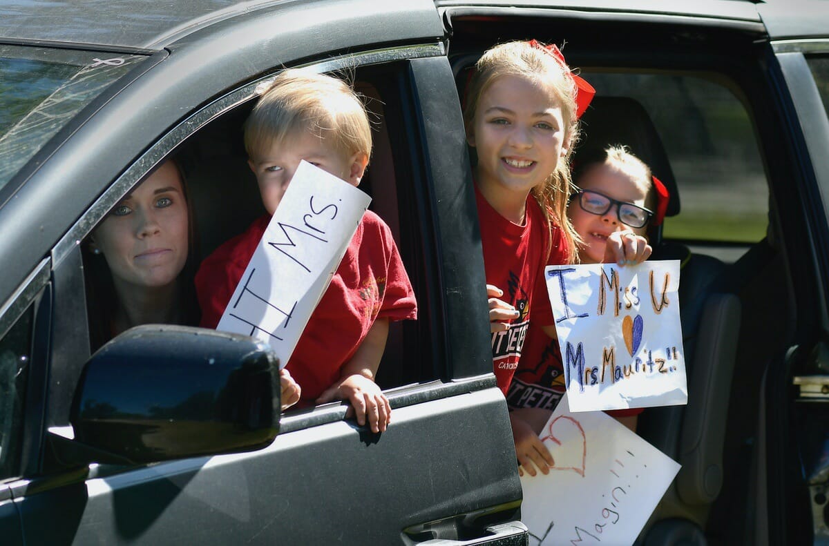 Teachers at St. Peter’s ‘drive-by’ for their kids