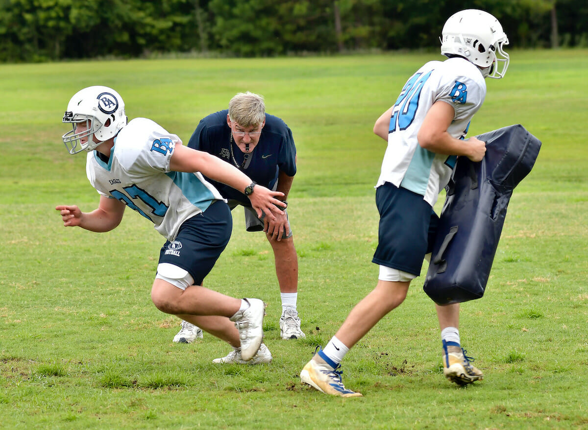 The Beaufort High School Eagles were in high gear during preseason practice Monday morning as ball carriers and interior linemen went through their drills. The Eagles were 5-2 last year. This year’s season opener is at home against Richmond Hill on Friday, Aug. 20. Photos by Bob Sofaly.