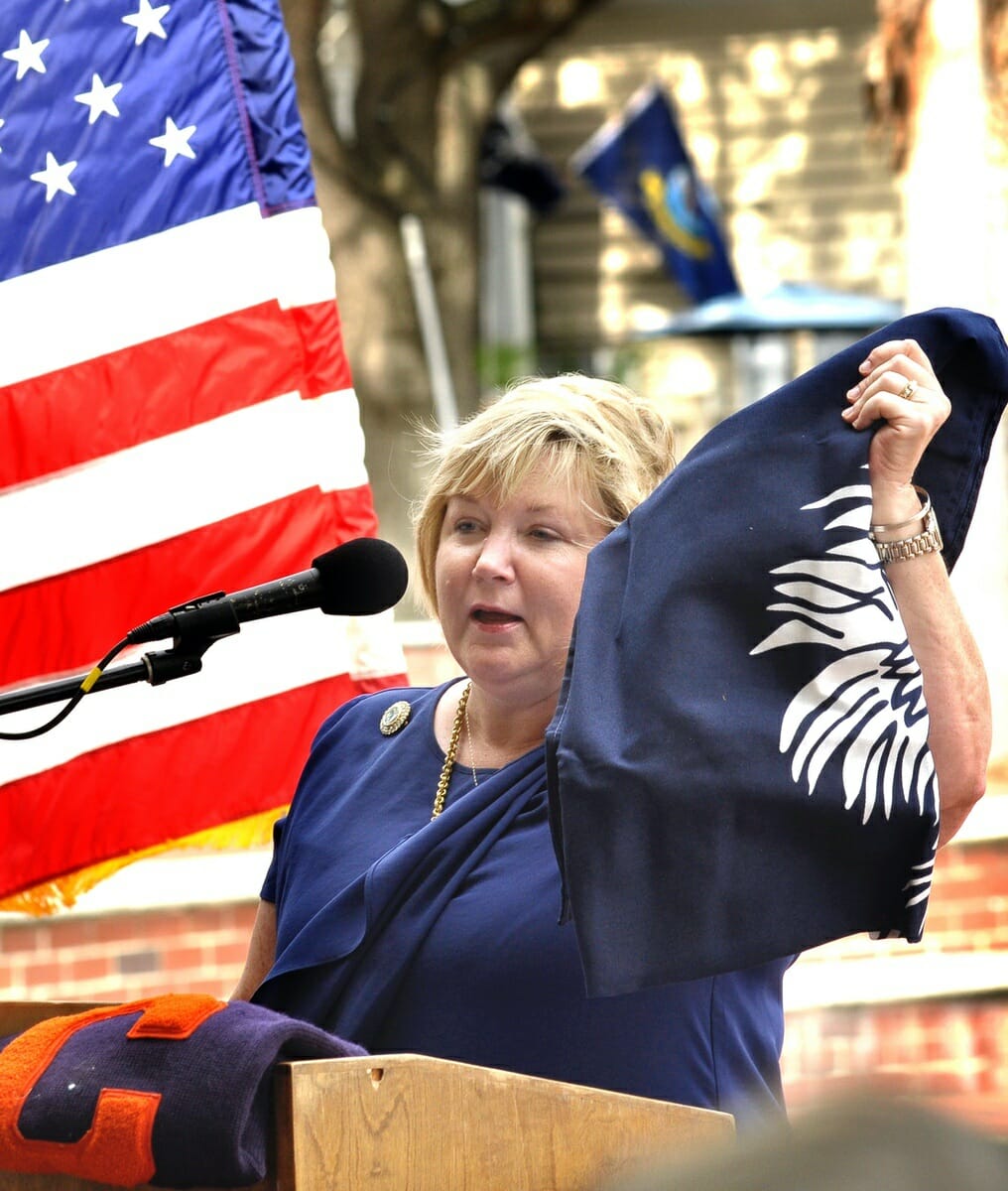 Photo above: City of Beaufort firefighters give a hand salute after presenting the colors to begin the memorial service for the late Henry C. Chambers on Monday at the Waterfront Park named in his honor. Chambers was called the “Champion of Beaufort” and was compared to David against Goliath in saving a dying little town. Photos by Bob Sofaly.
