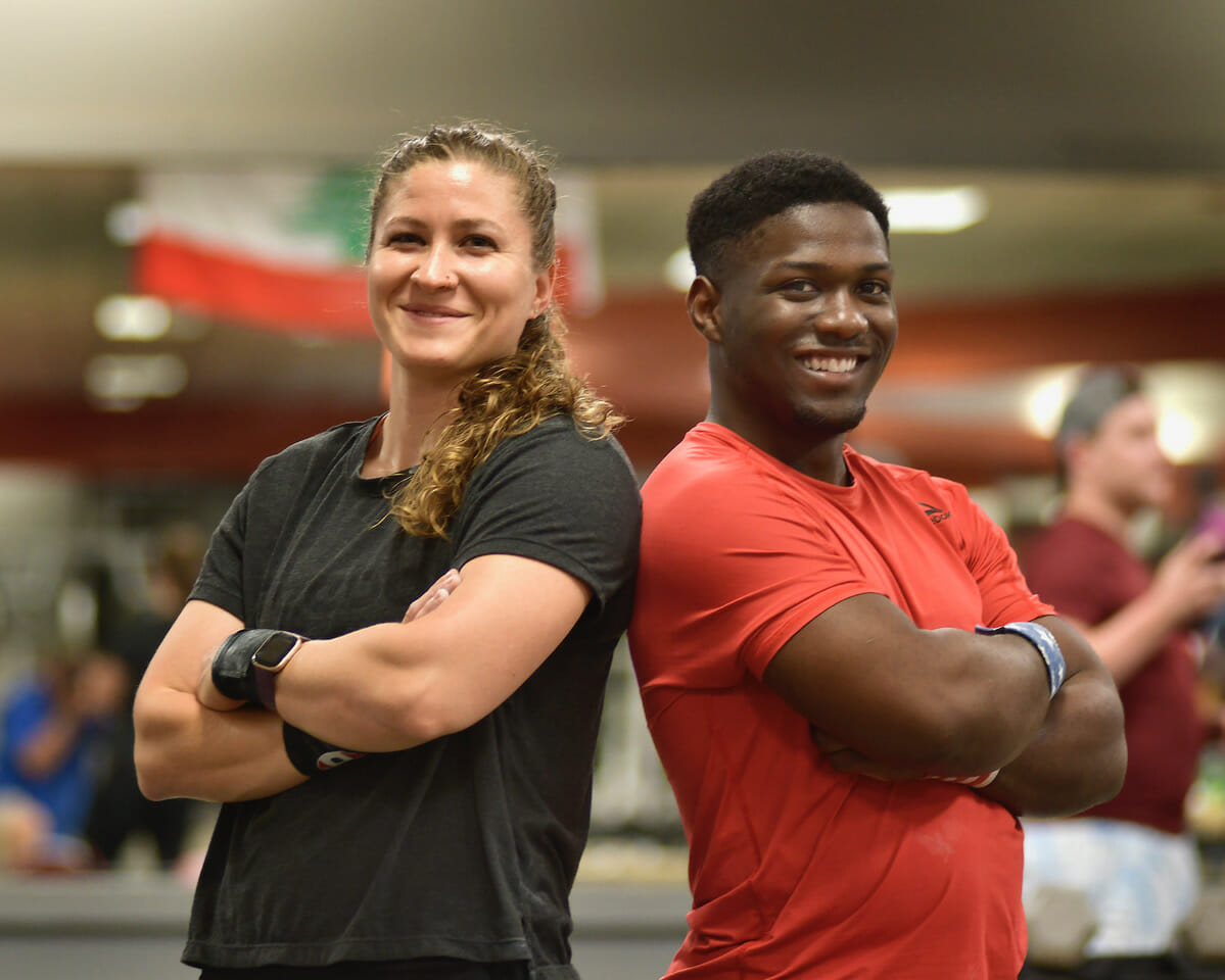 Team Beaufort members, Mahassen Hala Fattouh, left, of Lebanon, and C.J. Cummings of Beaufort take time out from their workout to mug for the camera Thursday, July 8. Both will be competing in the upcoming 2020 Summer Olympic Games in Toyko. Photo by Bob Sofaly.