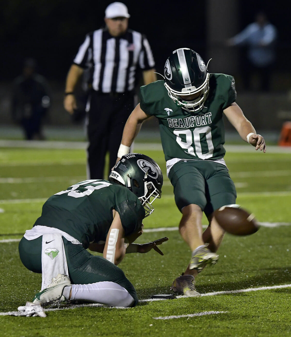 Beaufort got the ball to start the second half but couldn’t take advantage, and Martin dumped a pass over the line to tight end Anthony Steele, who raced to the end zone for a score that made it an 18-point game and stunned the Kirkland Krazies and Co. back into silence.