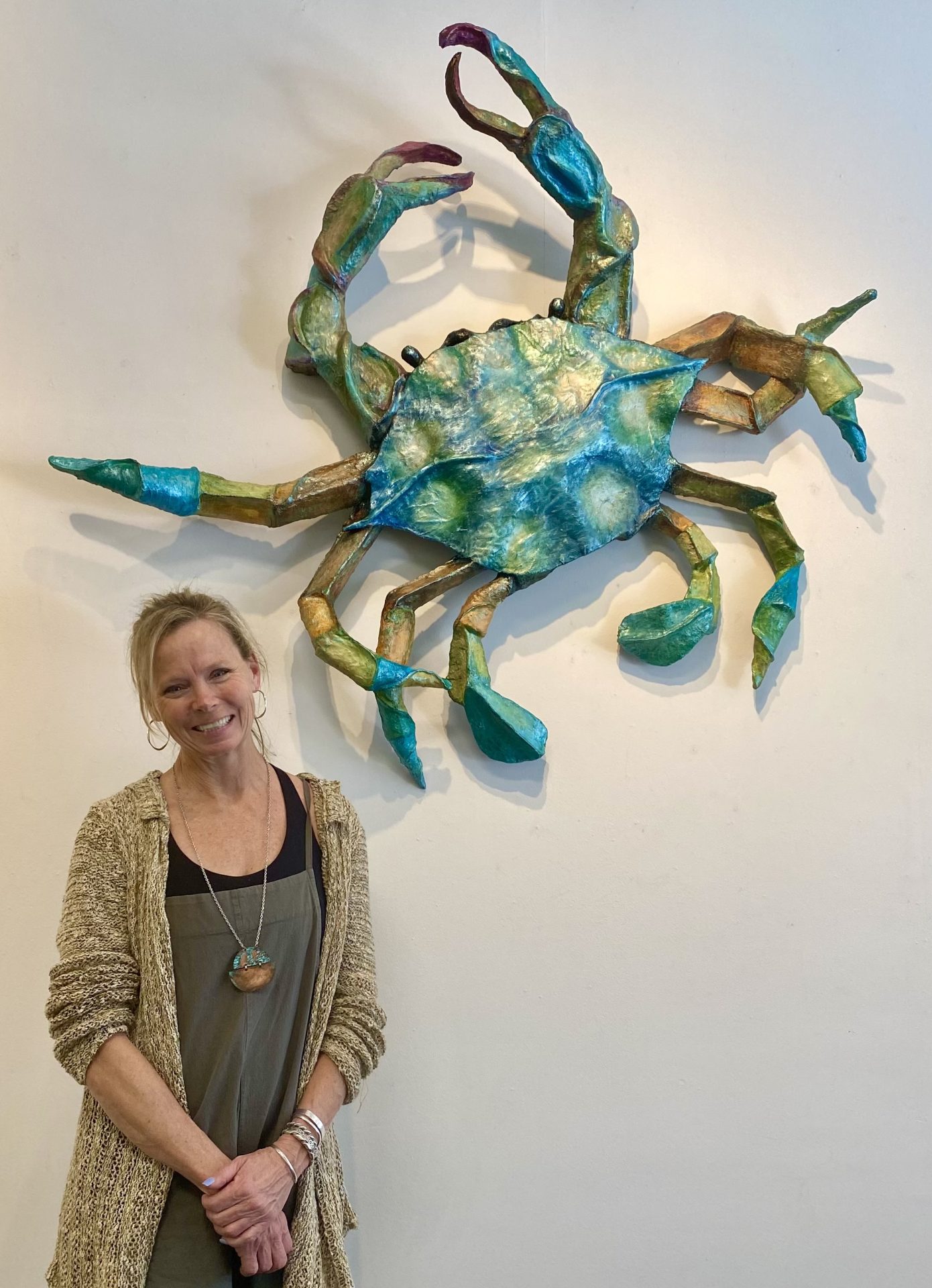 Paige Nelson stands with a Blue Crab sculpture. Submitted photo