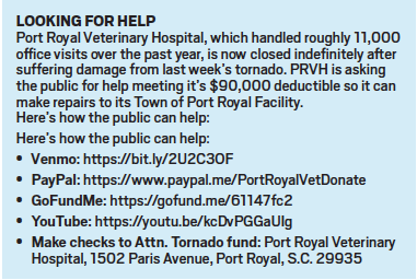 But the storm left a serious mark on three local businesses, particularly the Port Royal Veterinary Hospital (PRVH), which is closed indefinitely while awaiting repairs.