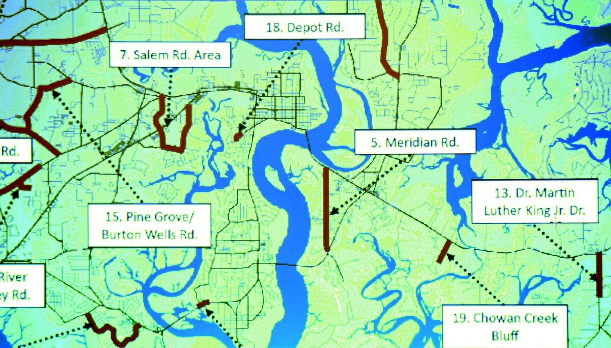 A yes vote would provide up to $30 million to make traffic improvements on Lady’s Island between the Woods Memorial Bridge and the Chowan Creek Bridge. Another $10 would go to installation and repair of sidewalks and multi-use pathways in 24 locations throughout the county to help provide safe walking routes to schools and improved access to residential communities. And $80 million would go to traffic improvements to the U.S. 278 corridor, including repairing or replacing existing spans of the bridges to Hilton Head Island and improvements between Moss Creek Drive and Squire Pope Road.