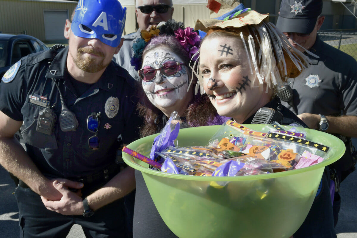 Proving that Trick or Treat isn’t just for kids, Beaufort Police Officer PT3 Keith Kastner-Smith, left, Danielle Raynard, wife of a Port Royal police officer, and PT3 Hillary Cottingham, also of the Beaufort PD, get into the spirit of Halloween during the Uptown Trunk or Treat on Sunday at the Charles “Lind” Brown Activity Center.