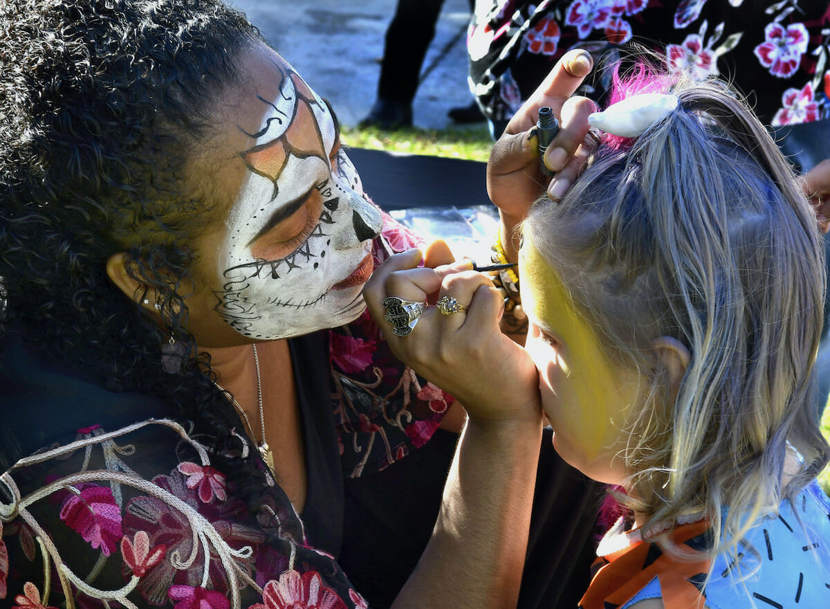 Dominique Tuttle, left, puts on the finishing touch to Laci Young’s face during the Uptown Trunk or Treat.