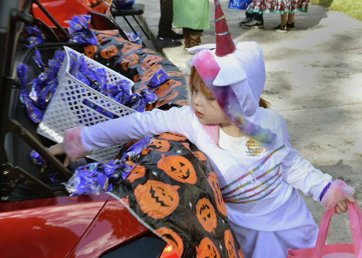 Michael and Audrey Adams, right, hand out the treats as children walk by during the Uptown Trunk or Treat on Sunday at the Charles “Lind” Brown Activity Center on Hamar Street. Photos by Bob Sofaly.