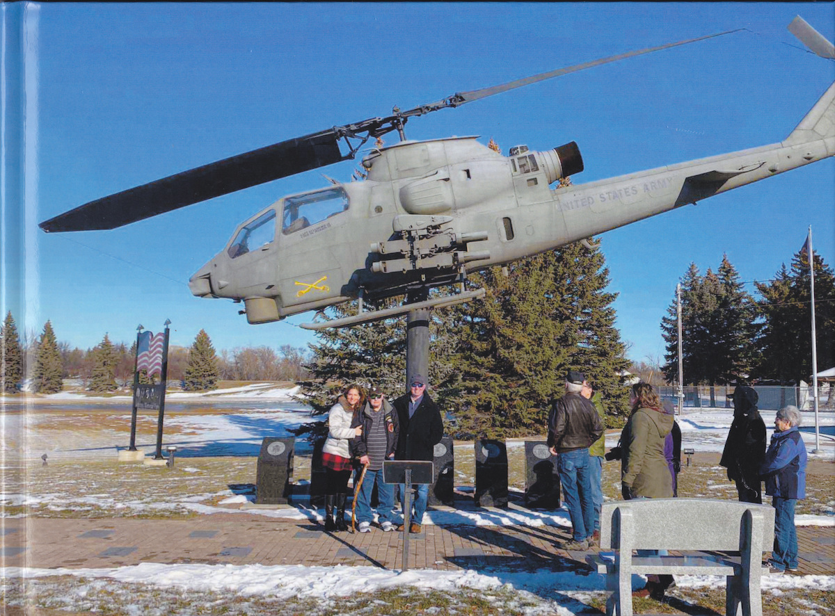 The very helicopter Bill Bootle flew in Vietnam is on display at the Breckenridge, S.D., Veterans Memorial Park. He’s pictured here with family and friends at the Park a couple years ago. Submitted photo