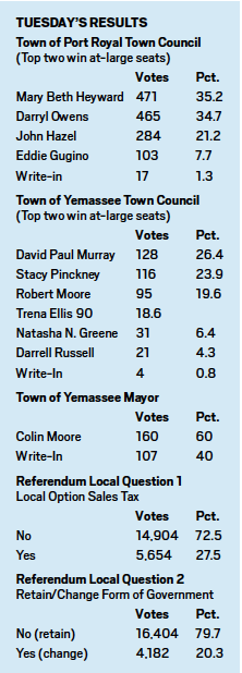 And in Town Council races in the Town of Port Royal, the two incumbents in the race easily held off two newcomers.