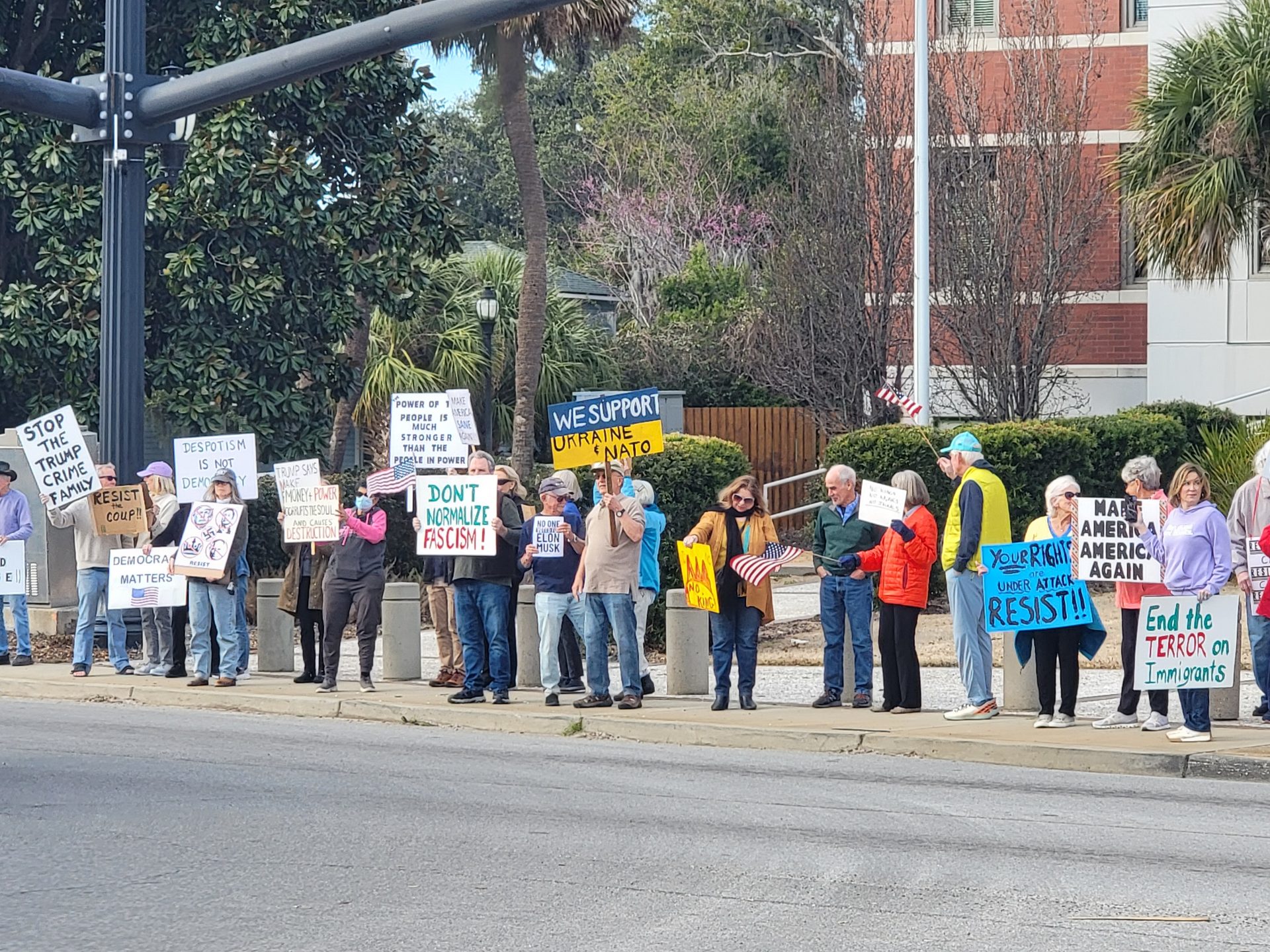 consecutive week, community members protest against the policies of Elon Musk and the Donald Trump Administration on Presidents Day, Monday, Feb. 24, 2025. More than 100 people took part in this week’s rally. Photo courtesy of Carter Hoyt