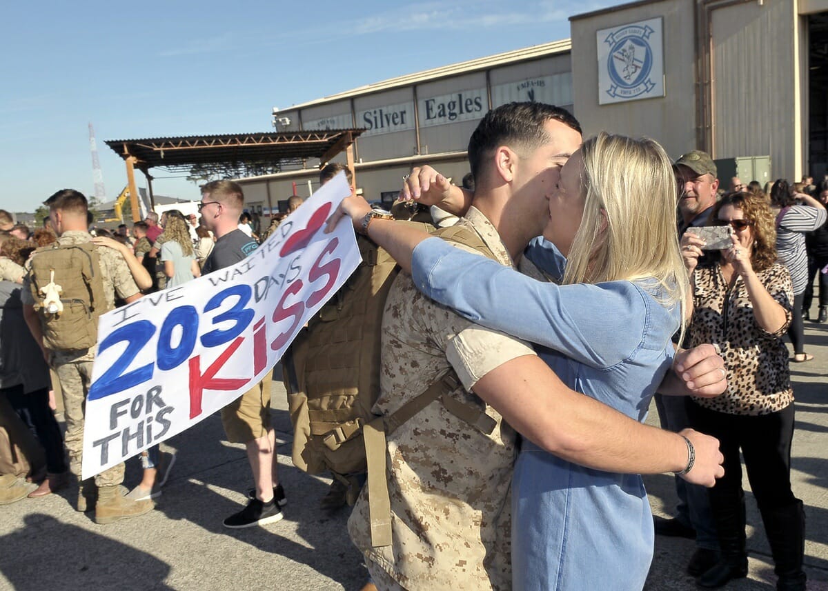 An undisclosed number of Marines and sailors with Marine Fighter Attack Squadron (VMFA) 115, returned home to Marine Corps Air Station Beaufort on Tuesday, Oct. 30, after a nearly seven-month deployment to Bahrain.