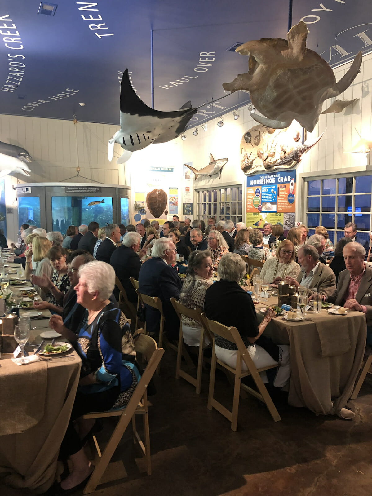 Supporters of the Port Royal Sound Foundation gathered at the Maritime Center on Saturday for the organization’s annual fundraiser, Night on the Sound. The evening started with cocktails and bluegrass music on the patio, then the guests moved indoors for a wonderful dinner, followed by a presentation by keynote speaker, Carole Baldwin.