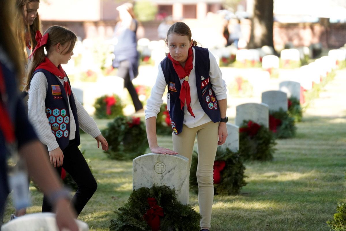 Volunteers place almost 25,000 red wreaths on Wreaths Across America Day